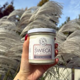Estetyczny, subtelny wygląd świecy idealnie współgra z zawartością: aromatyczny wosk z pewnością dostarczy wielu doznań, nie tylko dotykowych, ale i zapachowych. To jedno z najciekawszych doświadczeń, które naprawdę warto poznać. Ta niepozorna świeca może pozytywnie Cię zaskoczyć, a masaż ukoi Twoje skołatane nerwy, wyciszy i zrelaksuje.
