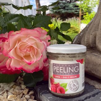 Receptura peelingu malinowego została opracowana na bazie surowców roślinnych: maśle shea, olejku kokosowym, ze słodkich migdałów, olejku winogronowym, a także witaminie E, która jest jedynym konserwantem w kosmetyku. Masło Shea i olej kokosowy doskonale natłuszczają i wygładzają skórę. Olej z pestek malin dodaje ładnego kolorytu zmęczonej skórze, ma działanie ujędrniające i przeciwstarzeniowe. Olejki: z winogron i ze słodkich migdałów, sprawiają, że skóra jest pełna blasku, elastyczna i przyjemna w dotyku. Witamina E, zwana witaminą młodości regeneruje naskórek, dodając mu witalności i blasku.