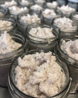Peeling jest w 100% naturalny, wegański, zawiera nierafinowane masła i olejki roślinne: