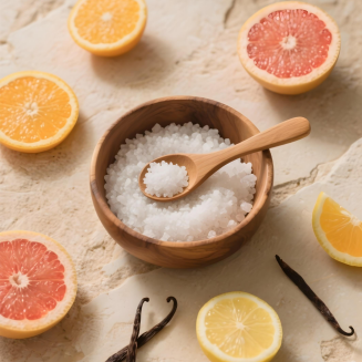 Nasza sól dodatkowo zawiera tylko naturalne olejki eteryczne, mieszankę energizujących cytrusów, która odświeża, tonizuje oraz relaksuje. W przypadku kąpieli stóp dobrze zmiękcza twardy naskórek i wpływa korzystnie na macierz paznokcia.