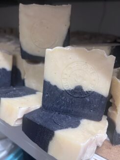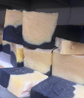 Węgiel aktywny - produkt leczniczy, wytwarzany jest z miazgi drzewnej przy temperaturze blisko 900 stopni Celsjusza. Ma działanie antyspetyczne, odświeżające skórę, likwiduje zaskórniki, wspomaga leczenie trądziku. Węgiel redukuje sebum, wspomaga leczenie łupieżu, nadaje mydłu czarny kolor.