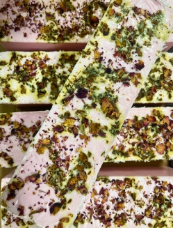 z dodatkiem masła shea, suszonych płatków i olejku z róży damasceńskiej