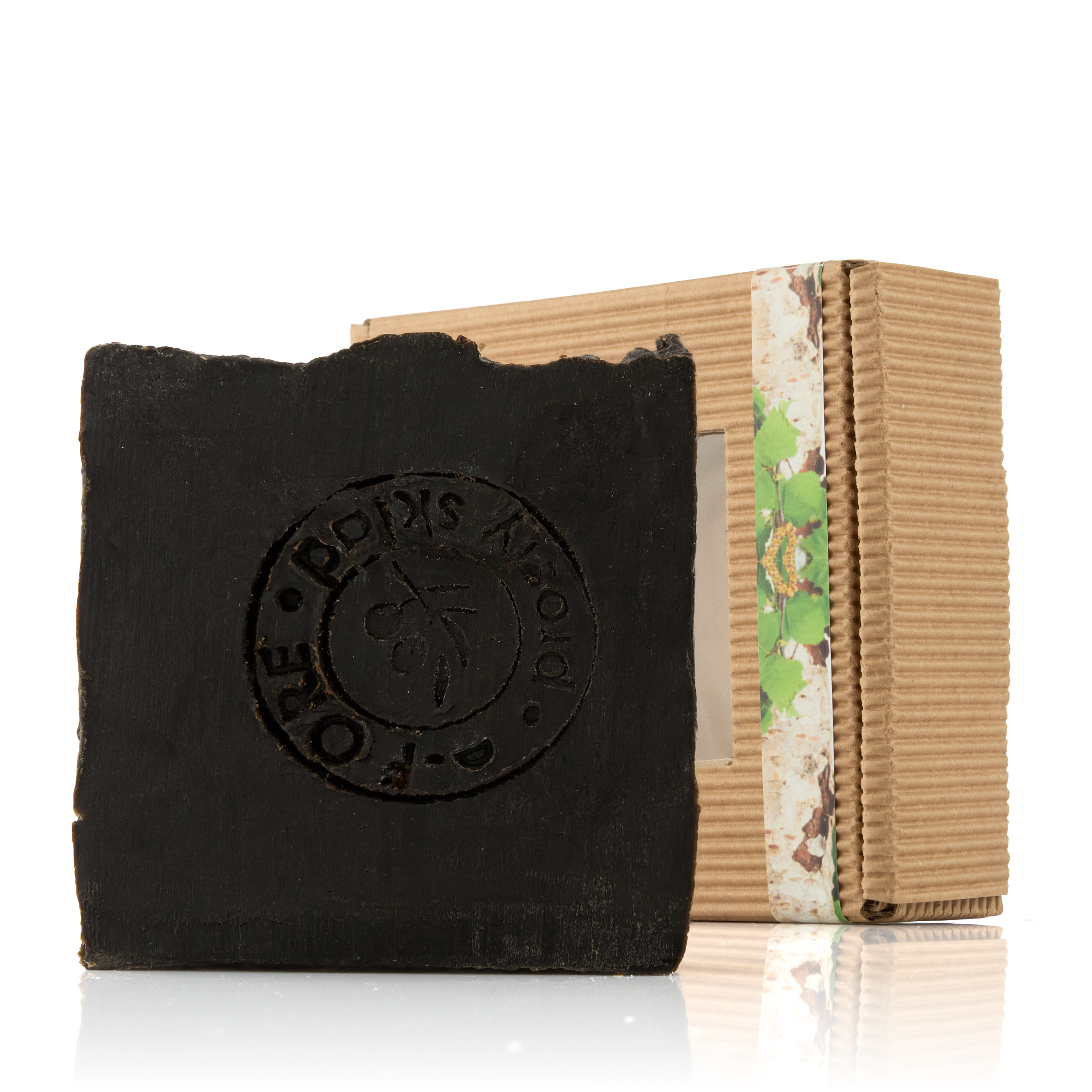 Mydło posiada charakterystyczny zapach palonego drewna i ciemny kolor, gdyż zawiera w sowim składzie aż 15% cennego ekstraktu z brzozy - powstałego z suchej destylacji drewna.
