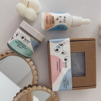 Mydło zostało stworzone w na podstawie tradycyjnej receptury produkcji mydła. W składzie tylko wysokiej jakości naturalne masło shea i oleje roślinne: arganowy, kokosowy, jojoba oraz naturalne olejki eteryczne z lawendy i tymianku. Składniki te wzmacniają naturalny płaszcz ochronny skóry i sierści, ułatwiają rozczesywanie, odżywiają, nawilżają skórę i regenerują włos.